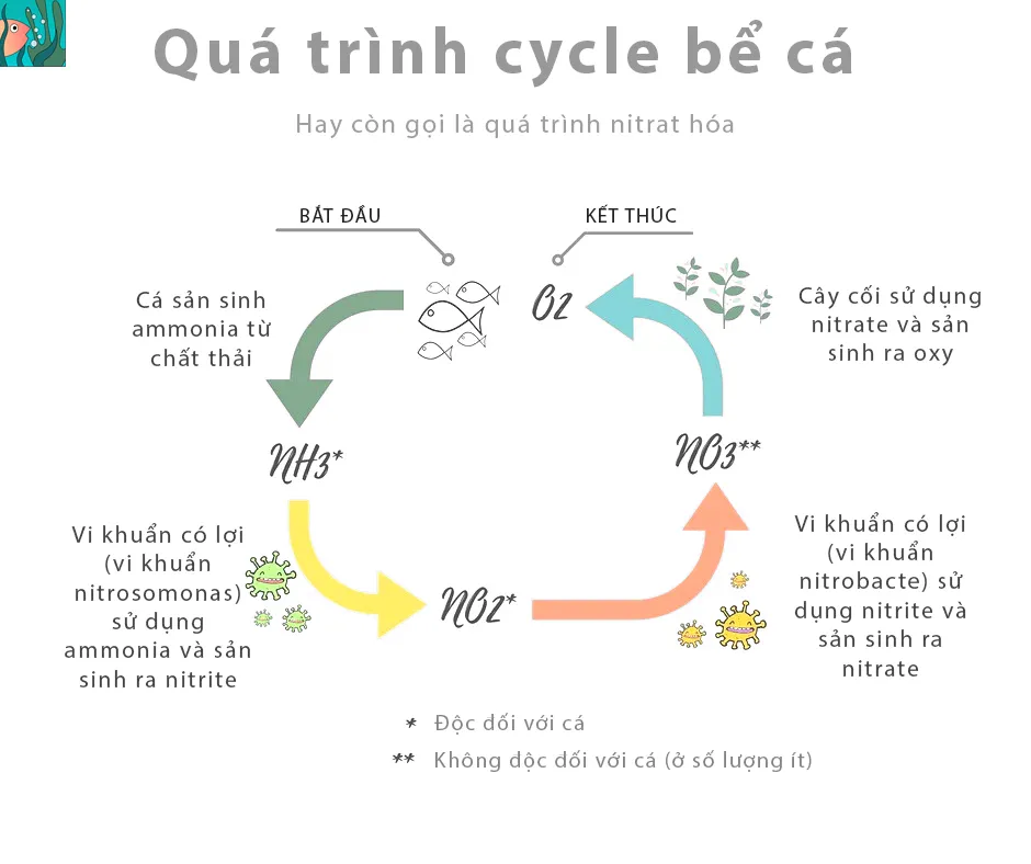 Sau đó các loại vi khuẩn tự dưỡng sẽ sử dụng ammonia để làm thức ăn. Loại vi khuẩn tự dưỡng này gọi là vi khuẩn nitrat hóa. Các loại vi khuẩn này giúp chuyển hóa ammonia thành nitrite và rồi thành nitrate. Quá trình này sẽ gọi là quá trình nitrat hóa hoặc cycle.